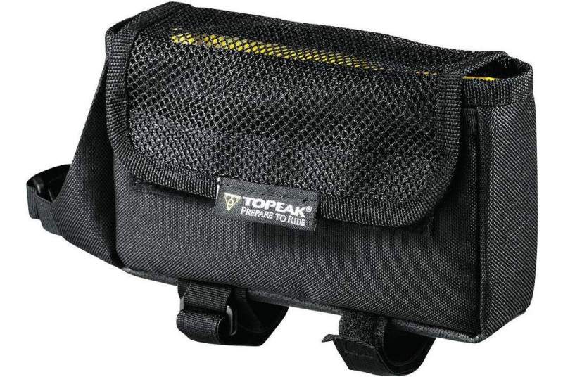 El bolso TriBag se monta rápidamente en el tubo superior de su bicicleta para un acceso rápido y fácil a las barras de energía o cualquier equipo esencial pequeño que necesite tener a mano. Dos bolsillos laterales para mayor capacidad. El tamaño grande se adapta a teléfonos inteligentes con pantallas de hasta 6 ".