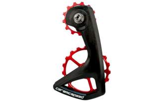 Con una jaula reforzada y ligera, el OSPW RS incorpora rodamientos cerámicos hechos a mano, que reducen la fricción en la transmisión y mejoran la eficiencia del pedaleo. Las poleas sobredimensionadas (generalmente 13 y 19 dientes) permiten un paso de cadena más suave y estable, reduciendo el desgaste y la resistencia en comparación con la configuración estándar.