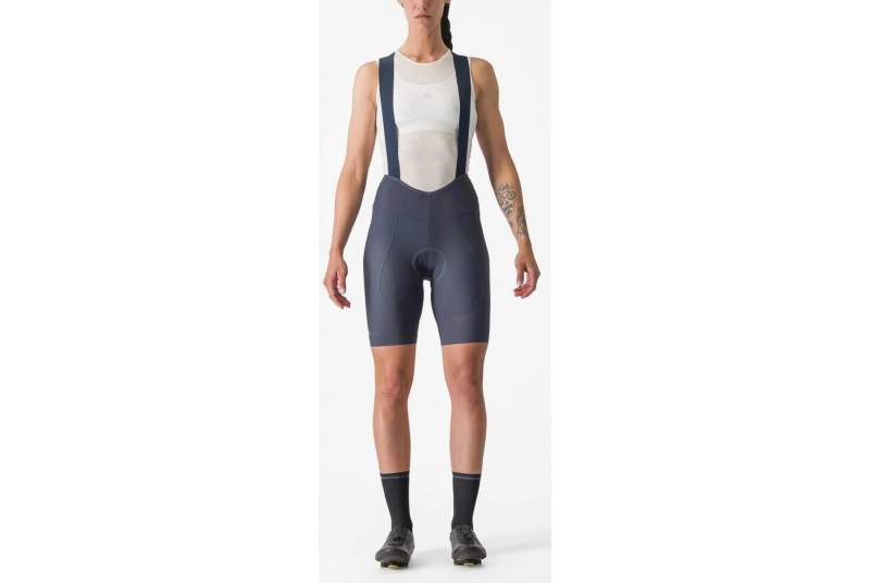 Culotte Castelli Espresso mujer, consta de una tela suave y elástica, la cual se siente muy cómoda en contacto con la piel desde el primer momento en el que nos lo ponemos, el tejido del culotte Castelli Espresso ofrece un ajuste fit sin sentirse apretado, en el que Castelli ha presentado especial atención al ajuste para asegurarse de que todo quede donde se desea añadiendo unas inserciones de silicona en el final de culotte. Los tirantes de malla son elásticos y flexibles, al mismo tiempo que ofrecen una ventilación adicional. El culotte Castelli Espresso utiliza la badana Progetto X2 Air para comodidad durante todo el día, su capa Skin Care es una capa suave, elástica, sin costuras y antibacteriana, con la simple finalidad de prevenir cualquier tipo de rozadura. Está realizada así para adaptarse a la forma de tu cuerpo y al sillín sin que se creen arrugas en el tejido, aparte está perforada para mejorar el paso del aire, con una densidad múltiple y espesores infinitamente diferenciados, los cuales aportan una gran comodidad.