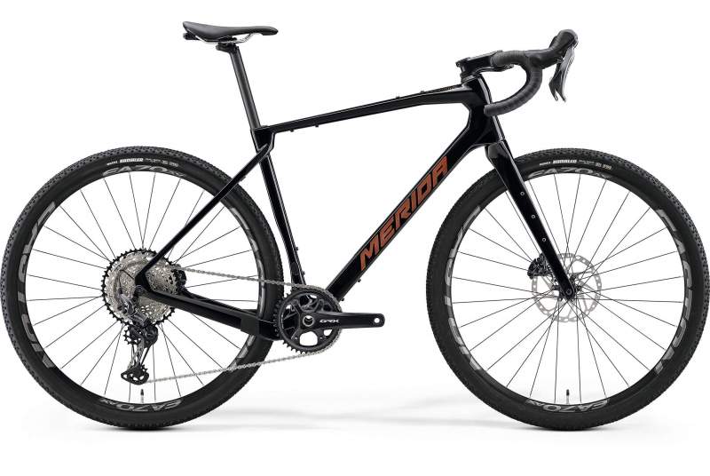 En cuanto al cuadro Merida lo ha rediseñado completamente en comparación con el modelo Siles antiguo, más orientado a un tipo de Gravel más recreativo, creando una pipa de dirección más pequeña, modificando también el ángulo de la dirección para aumentar la estabilidad tanto en zonas llanas como descensos, haciendo que nos sintamos más seguros, se ha aumentado el paso de rueda has los 45mm que era una mejora que estaba pidiendo el modelo anterior de Merida, consiguiendo de esta forma mayor absorción y mayor comodidad cuando los caminos estén en las peores condiciones, así mismo el espacio del puente de la horquilla con respecto a la cubierta también se ha aumentado para maximizar el espacio de “suspensión”, en la parte trasera también se ha modificado el tamaño de las vainas pudiendo montar de esta forma en la versión monoplato un plato máximo de 45 dientes y en la versión monoplato un compact 50/34 dientes respectivamente, concretamente la Silex 7000 2024 viene montada con el grupo Shimano GRX monoplato de 12 velocidades, polivalente para afrontar diversidad de terrenos, tanto llanos como cuesta arriba, ya que cuenta con un cassette 11/51