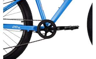Los frenos de disco mecánico y las palancas Logan de aluminio garantizan un frenado confiable incluso en condiciones húmedas o terrenos irregulares, mientras que las ruedas de 26" con cubiertas 26 x 2.35/TUBE AV aportan estabilidad, tracción y confianza.