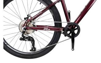 Los frenos de disco mecánico y las palancas Logan de aluminio garantizan un frenado confiable incluso en condiciones húmedas o terrenos irregulares, mientras que las ruedas de 26" con cubiertas 26 x 2.35/TUBE AV aportan estabilidad, tracción y confianza.