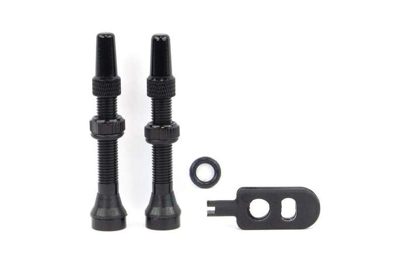 El artículo contiene dos válvulas Presta de la medida a seleccionar en mm, construidas en aluminio. Incluye la llave de obús para extraer con un toque el núcleo de la válvula.