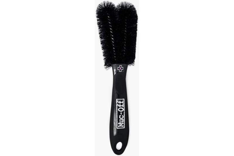 Opinión del experto. Incluso a lo más sencillo, Muc-Off le da una vuelta de tuerca para hacernos la vida más fácil. Este cepillo con doble cabezal mejora el acceso a zonas estrechas o con recovecos, por estrechos o angostos que sean. No permitas que el polvo o el barro se quede pegado zonas con juntas como las cazoletas del pedalier, los bujes, la dirección... ¡Evitarás crujidos y futuros problemas!