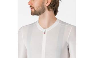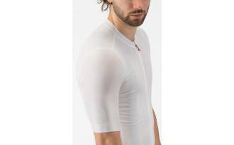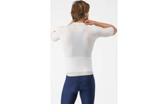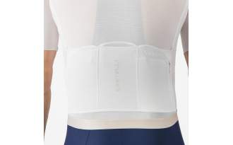El núcleo de su rendimiento está en el tejido exclusivo Air_O Stretch, desarrollado por Castelli para ofrecer una elasticidad multidireccional que permite un ajuste ceñido sin generar presión. Este tejido no solo mejora la ergonomía sobre la bicicleta, sino que optimiza la evacuación del sudor, manteniendo una microclima estable incluso en esfuerzos prolongados.
