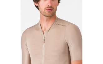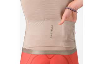 El núcleo de su rendimiento está en el tejido exclusivo Air_O Stretch, desarrollado por Castelli para ofrecer una elasticidad multidireccional que permite un ajuste ceñido sin generar presión. Este tejido no solo mejora la ergonomía sobre la bicicleta, sino que optimiza la evacuación del sudor, manteniendo una microclima estable incluso en esfuerzos prolongados.