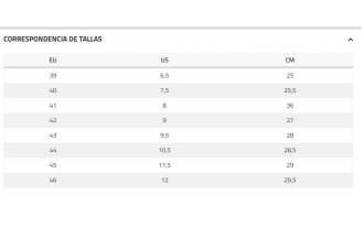 Guía de tallas zapatillas orientativa