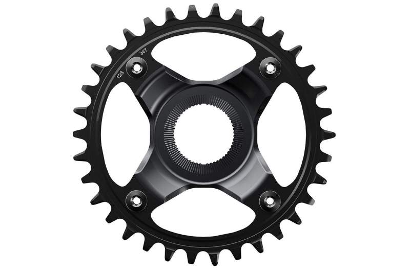Plato Shimano Steps E8000 de 34 dientes diseñados específicamente para mantener la cadena colocada correctamente de forma permanente y evitar que se salga, gracias a la tecnología Dynamic Chain Engagement+, característica de platos XTR, XT y SLX. Compatible con las bielas E8000, E8050 y M8050 y transmisiones de 10 y 11 velocidades.