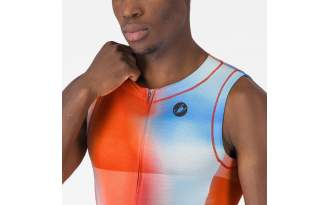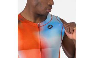 El traje integral sin manga Castelli Free San Remo 3 ha sido diseñado para optimizar la aerodinámica, la ventilación y la libertad de movimiento, ofreciendo una experiencia de carrera inigualable.