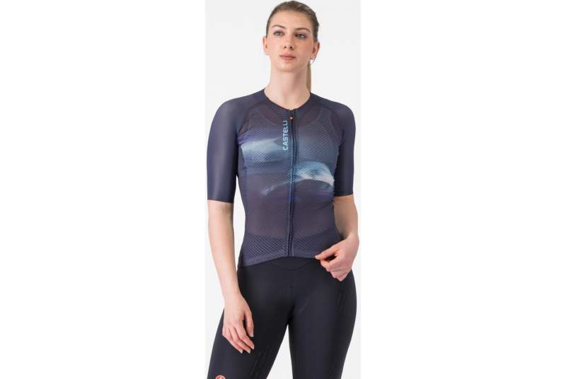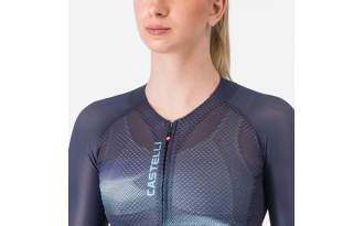 El maillot Castelli Climber's A/C W está diseñado específicamente para la anatomía femenina, siendo un maillot que ofrece una ventilación excepcional gracias a su combinación del tejido delantero Flusso 3D y la espalda StradaPro 3D, que permiten que el aire circule libremente, manteniendo la piel fresca incluso en las subidas más exigentes.