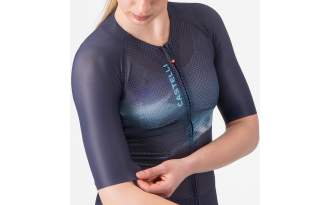 Opinión del experto: El maillot Castelli Climber's A/C W ha sido diseñado para la mujer ciclista que quiere escalar sin límites. Su tejido avanzado Flusso 3D y StradaPro 3D garantiza máxima transpirabilidad y ligereza, mientras que la confección Airflow en los hombros potencia la eficiencia aerodinámica. Cada subida va a ser más sencilla, con protección solar UPF 13 y ajuste perfecto gracias al elástico de cintura.